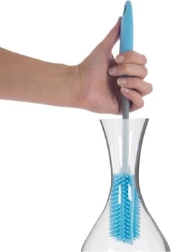 Ook altijd moeite met het schoonhouden van flessen, vasen en bekers? De borstel is ontworpen voor het reinigen van melkflessen, kolfonderdelen spenen, vasen en bekers. De borstel bestaat uit siliconen haren. Dit zorgt ervoor dat alle hoekjes in de flessen goed worden schoongemaakt.