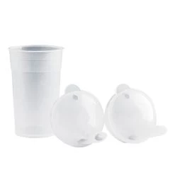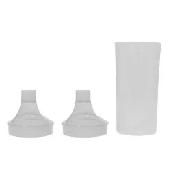 Deze Aidapt drinkbeker wordt geleverd inclusief twee lange tuitdeksel met verschillende openingen. Met deze tuitdeksels kunt u makkelijker drinken en meer gedoceerd. Afhankelijk van de gekozen deksel heeft de beker een opening van 2x4mm of een diameter van circa 5 mm. Het tuitje met 5 mm is groot genoeg om er eventueel een rietje doorheen te doen of om sondevoeding door te drinken. Voor het gedoceerd drinken zijn de deksel voorzien van een luchtgat voor geleidlijk schenken. De inhoud van de drinkbeker is 250 ml en is voorzien van een maatvoering per 50 ml. De buitenste diameter van de tuit is 20×10 mm. De beker en tuitdeksels zijn geschikt voor de vaatwasmachine.