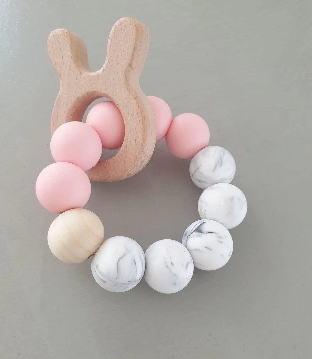 Bijtring, Bijtring Baby, Rammelaar Siliconen Bijtring, Baby Speelgoed, Hout Speelgoed , Kraamcadeau, Baby Speelgoed 0 Jaar