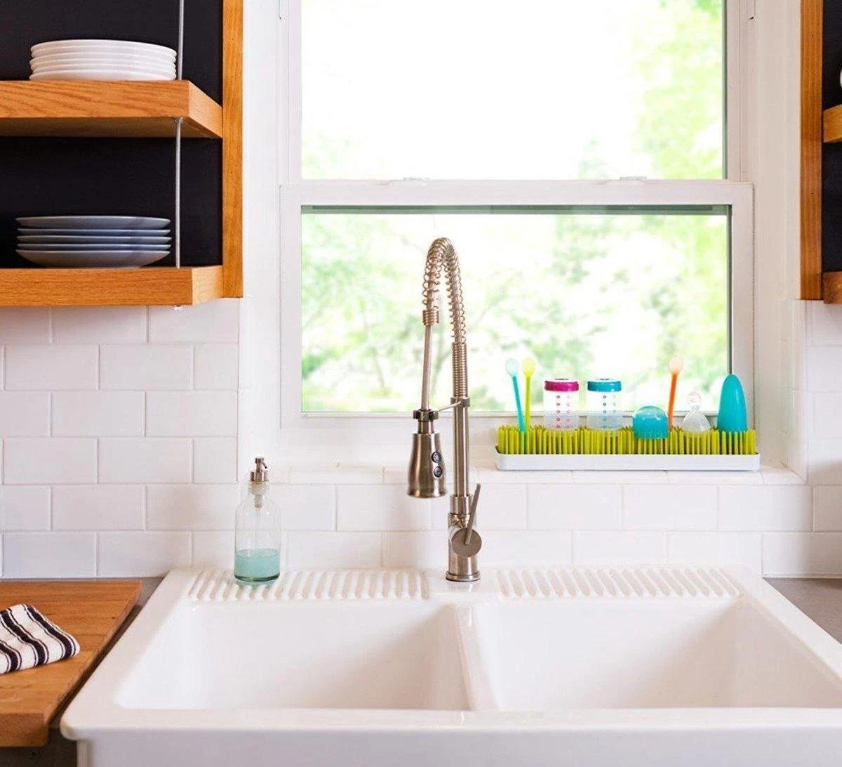 Dit handige afdruiprekje is een variant op de BOON Afdruiprekjes Grass en Lawn en ideaal voor kleinere ruimtes dankzij het smalle formaat. Het afdruiprekje dient voor het drogen van allerlei babyvoedingsartikelen. De spulletjes rusten in het gras, terwijl het water in het onderliggende opvangbakje druipt. Ideaal voor flesjes en fopspenen. De Patch is langwerpig en past daardoor op elk aanrecht. Je hebt dus geen designkeuken nodig om je keuken er hip en trendy te laten uitzien!