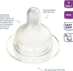 Difrax Flessenspeen Wide Voor Brede Babyflessen – Maat Small – 2 Stuks