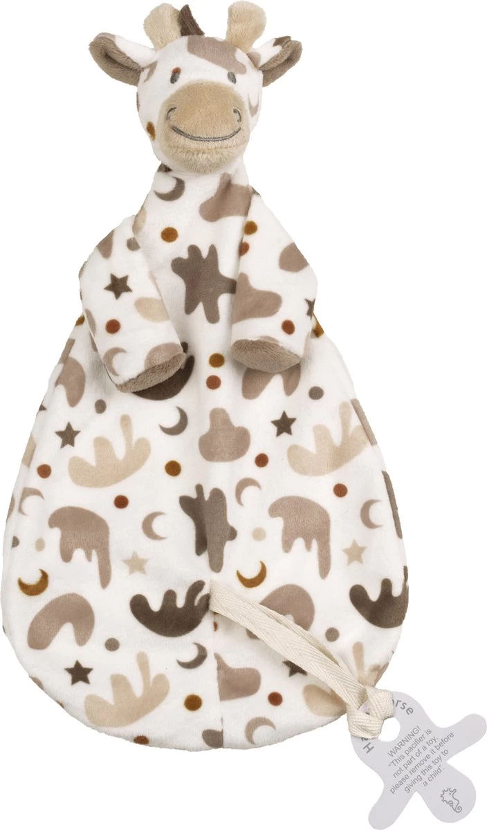 Wil jij ook lekker tuttelen met giraf Gino maar vind je een knuffel te groot? Dan is dit knuffeldoekje van giraf Gino echt iets voor jou. Als je een speentje vastknoopt aan het lusje op zijn buikje, zorgt hij ervoor dat je die niet kwijtraakt.