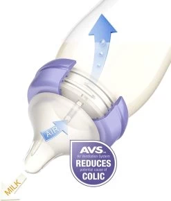 De unieke aflopende vorm van de speen zorgt voor een soepele tongbeweging bij je kindje. Dankzij de getextureerde, brede speenbasis is het gemakkelijk om je kindje aan te leggen aan het flesje. Het Air Ventilation System (AVS) vermindert de inname van lucht tijdens het drinken, waardoor je kindje minder buikkrampjes krijgt na het voeden.