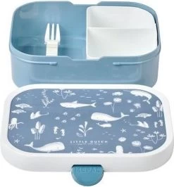Deze mooie Little Dutch Ocean Lunchbox Blue is ideaal voor als je kindje naar school gaat. Zo kan je kindje zijn/haar lunch of snacks gemakkelijk meenemen voor onderweg. De lunchbox kan verdeeld worden in drie vakken, waardoor je het eten gescheiden kunt houden. Ook wordt er een vorkje meegeleverd, zodat je kindje de kleinere stukjes ook gemakkelijk kan opeten. Verder is de lunchbox vrij van BPA en leuk te combineren met bijvoorbeeld de drinkbeker.