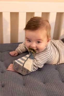 Comfort voor kleintjes. Kies voor dit boeiende speendoekje en je hebt de speen van je baby altijd binnen handbereik. Het is daarmee ook een geweldig kraamcadeau. Bevestig een bijtring of speen aan de blauw getinte katoenen lus om hem schoon en dichtbij te houden. Het doekje doet daarnaast dienst als knuffeltje om mee te spelen en lekker met te kroelen voor het slapengaan. Vanaf de geboorte.