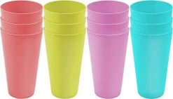 Merkloos Set Van 12 Kleurrijke Plastic Bekers – Herbruikbare Drinkbekers Van 600 Ml In 4 Kleuren – Stevige Plastic Bekers Voor Feesten, Kamperen, Barbecues, Picknicks En Strand – Vaatwasmachinebestendig En BPA-vrij