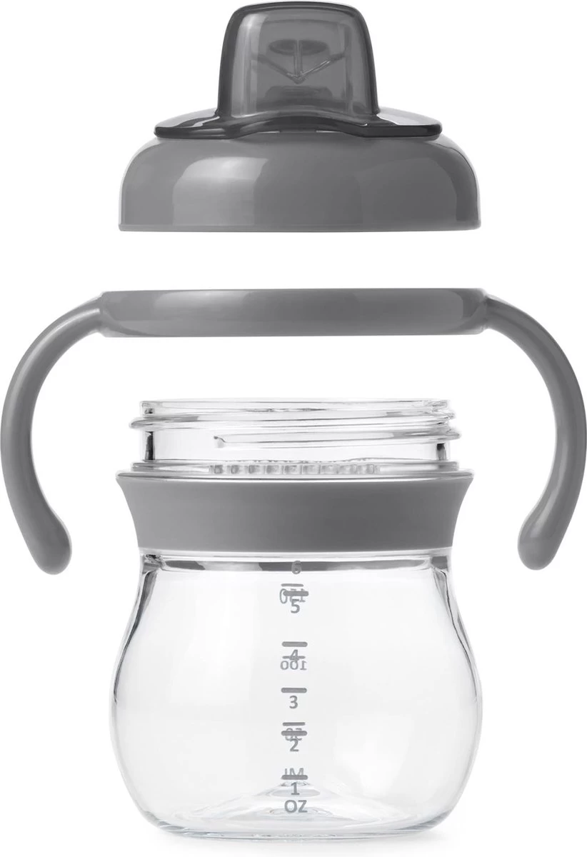 Deze baby drinkbeker kreeg een uniek design: de zachte tuit heeft de vorm van een amandel. Op die manier opent de tuit zich onmiddellijk als de lippen van het kindje aansluiten. De drinkbeker vergemakkelijkt de overgandg van borst voeding of flesvoeding naar een tuitbeker.