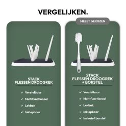 Hygiene staat voorop als het om de omgang met baby’s gaat. Het goed laten drogen van babyaccessoires is dan ook van groot belang om bacterievorming tegen te gaan. Het STACK Flessen Droogrek vormt de ideale standaard om babyaccessoires, maar ook bidons en flessen gemakkelijk te laten drogen!