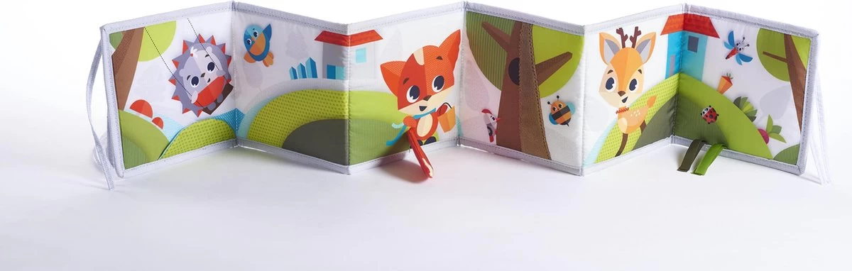 Het tweetraps Meadow Days™ dubbelzijdig eerste boek ondersteunt de ontwikkeling van baby’s met een aantrekkelijk ontwerp en boeiende activiteiten, terwijl het de buiktijd helpt verlengen. Het bevat een contrasterende zwart-witte kant die is ontworpen om de visuele ontwikkeling van jongere baby’s te stimuleren, en een kleurrijke scène uit de weide aan de andere kant die oudere baby’s zal bekoren. Met 7 leuke activiteiten met speelse texturen, contrasterende vormen en kleurrijke karakters, biedt het boek essentiële visuele en tactiele stimulatie. Het boek is makkelijk op te vouwen en mee te nemen waar je ook gaat, voor wat plezier en ontwikkeling onderweg, en kan aan de meeste wiegen worden bevestigd. Het TIny Love Double-Sided First Book stimuleert essentiële buiktijd en ondersteunt de ontwikkeling van cognitie, motorische vaardigheden, emotionele intelligentie en meer