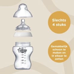 Met onze bekroonde** Closer to Nature-zuigfles is de overschakeling van borst- naar flesvoeding nog nooit zo eenvoudig geweest – het is namelijk verkozen tot moeders zuigfles nummer één voor de overschakeling van borst- naar flesvoeding!* Met onze tepelspeen en ingebouwde anti-koliekventiel is dit misschien wel het beste voor de baby, na u! Geïnspireerd door moeders, ontworpen door experts. Onze gemakkelijk aan te leggen tepelspeen, geliefd bij moeders en baby’s, voelt dichter op de huid en bootst de natuurlijke vorm en beweging van de moederborst na voor een comfortabele voeding. 95% van de moeders heeft gemeld dat de superzachte, als de huid aanvoelende siliconen speen door hun baby werd geaccepteerd en ze deze aan anderen zou aanbevelen. * Alle Closer to Nature-flesspenen zijn voorzien van een anti-kolieksysteem om darmkrampjes te voorkomen door ervoor te zorgen dat uw kind meer melk en minder lucht binnenkrijgt. Samen met het gevoelige ventiel van de zuigfles stimuleert de brede flessenhals de intuïtieve voeding van uw baby. De compacte vorm van de zuigfles, die is ontworpen om tijdens het voeden in de meest natuurlijke positie te worden gehouden, zorgt er ook voor dat de baby dichter bij u kan zijn. Tommee Tippee Closer to Nature-zuigflessen zijn verkrijgbaar in een breed scala aan maten, kleuren en versieringen. De spenen zijn ook verkrijgbaar met verschillende uitstroomsnelheden, zodat de melk sneller kan stromen naarmate uw baby meer honger krijgt! Dankzij de wijde flessenhals zijn de zuigflessen eenvoudig schoon te maken en zijn ze geschikt voor gebruik in de vaatwasser, magnetron en stoomsterilisatoren. 100% BPA-vrij voor volledige gemoedsrust. Welke uitstroomsnelheid heb ik nodig? We bieden verschillende uitstroomsnelheden om met uw baby mee te groeien. Elke baby is anders, maar als richtlijn raden we een langzame stroom aan voor 0+ maanden, een gemiddelde stroom voor 3+ maanden en een snelle stroom voor 6+ maanden. Closer to Nature-spenen zijn alleen compatibel met Closer to Nature-zuigflessen. Hoe vaak moet ik de flesspenen vervangen? We raden aan om uw flesspenen om de twee maanden te vervangen en ze moeten onmiddellijk worden vervangen als ze beschadigd of slap zijn. * Gebaseerd op een onderzoek uit 2021 onder 524 ouders die Tommee Tippee-zuigflessen gebruiken ** Made for Mums, maart 2020